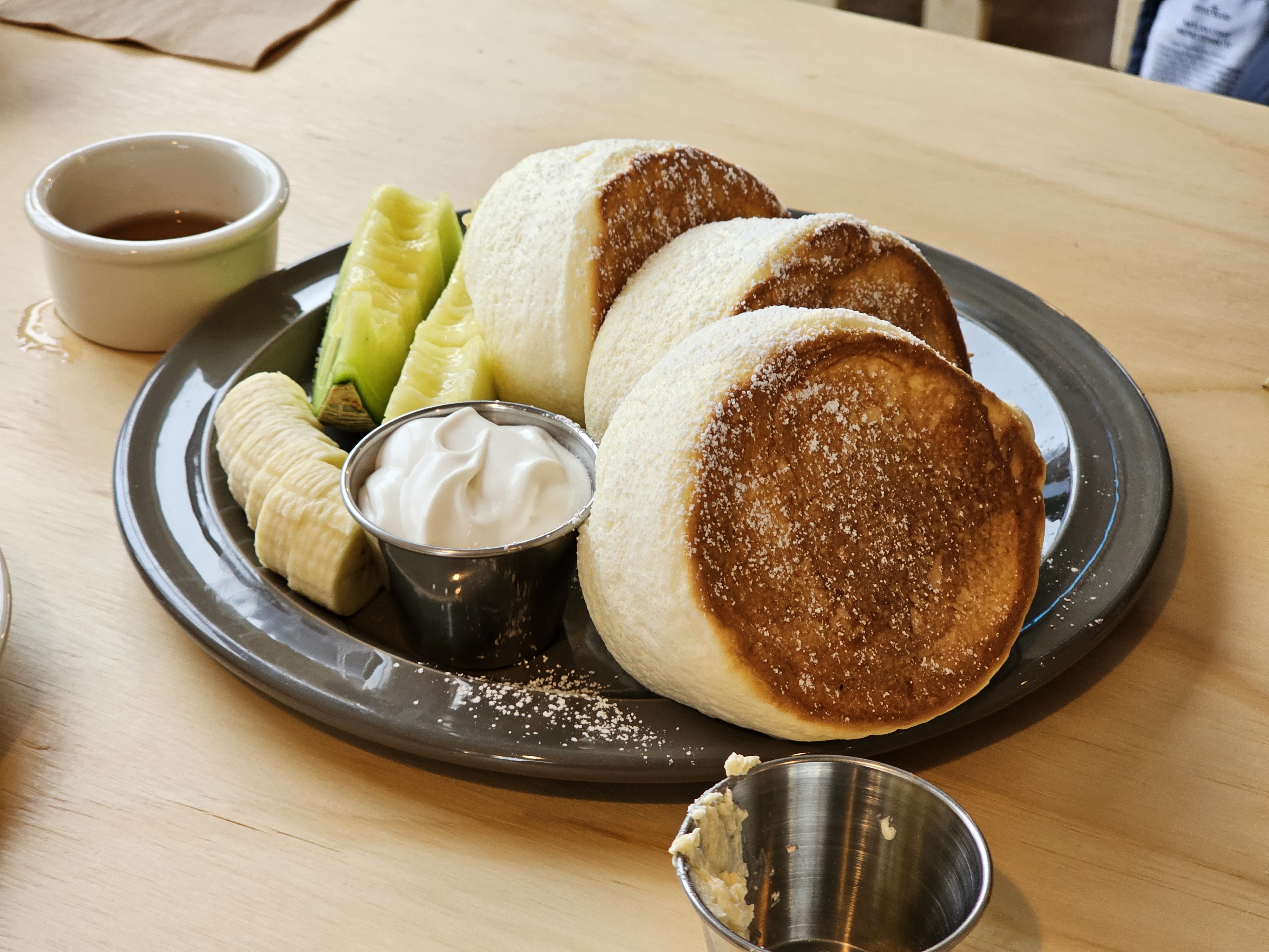 구운 감자도 간이 적절하게 되어 있어서 맛있어고, 팬케이크도 버터를 올려 먹으니 맛있더라고요.