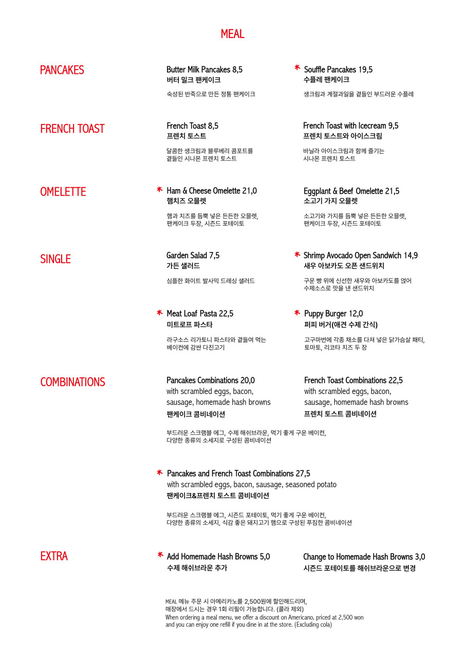 메뉴를 그 자리에서 바로 결정하기 힘드신 분이라면 아래 메뉴판에서 한 번 보고 방문하시는 것도 좋을 것 같아요.